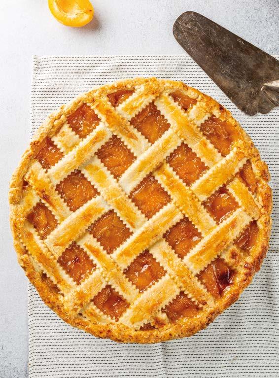 3 Spalmare un sottile strato di confettura, formare una griglia con le strisce di frolla e cuocere in forno a 160 °C per circa 30 minuti.