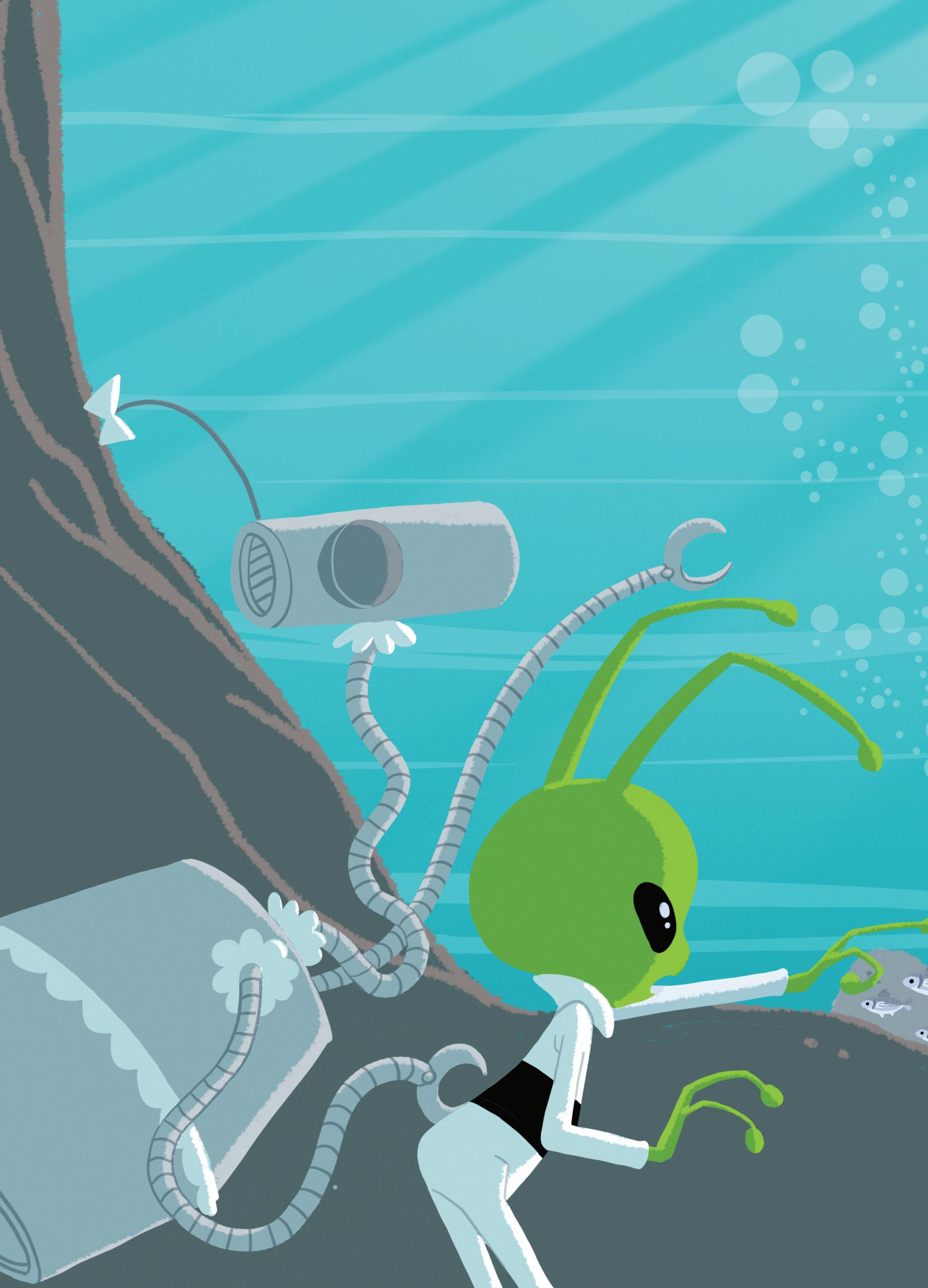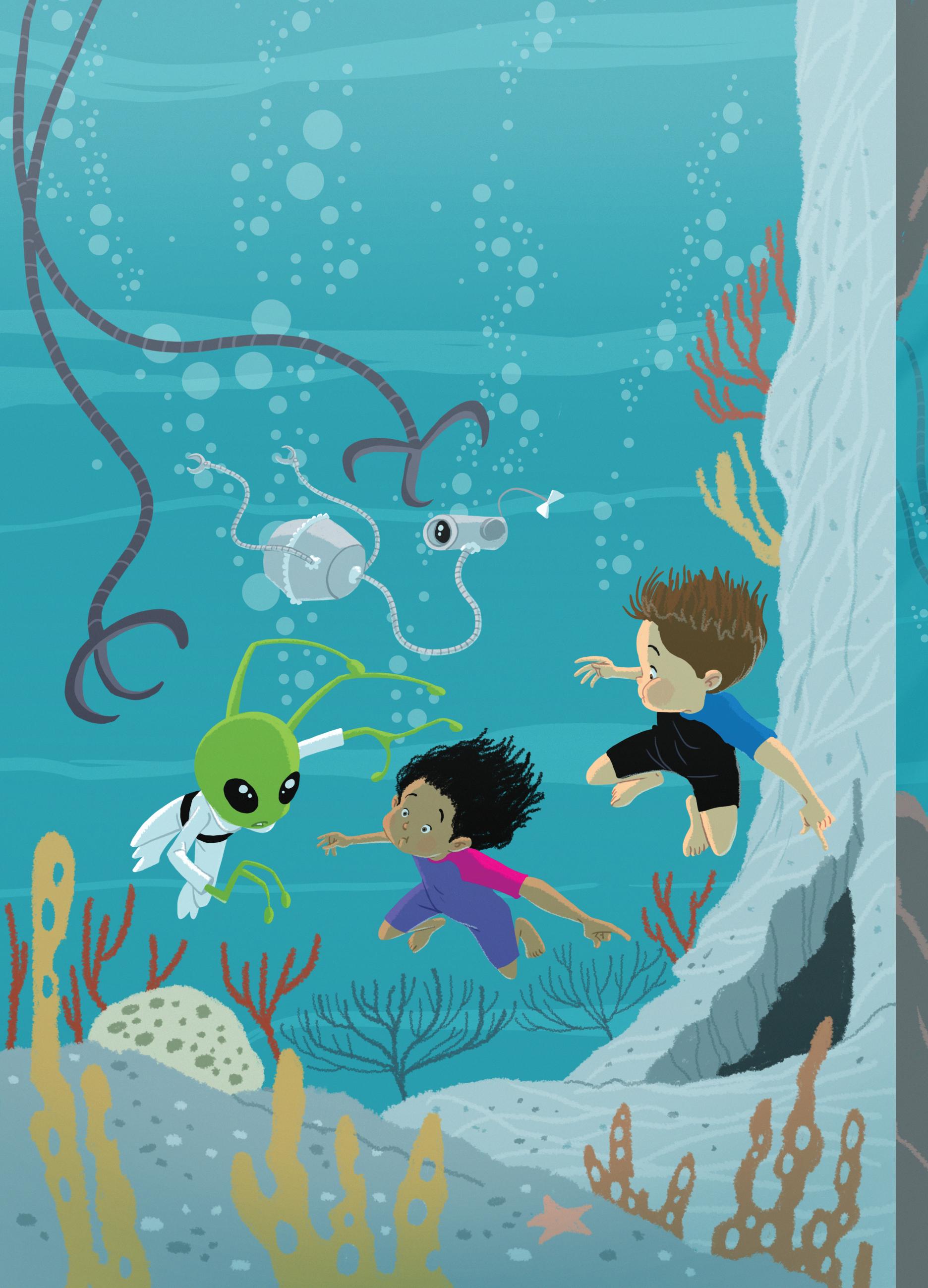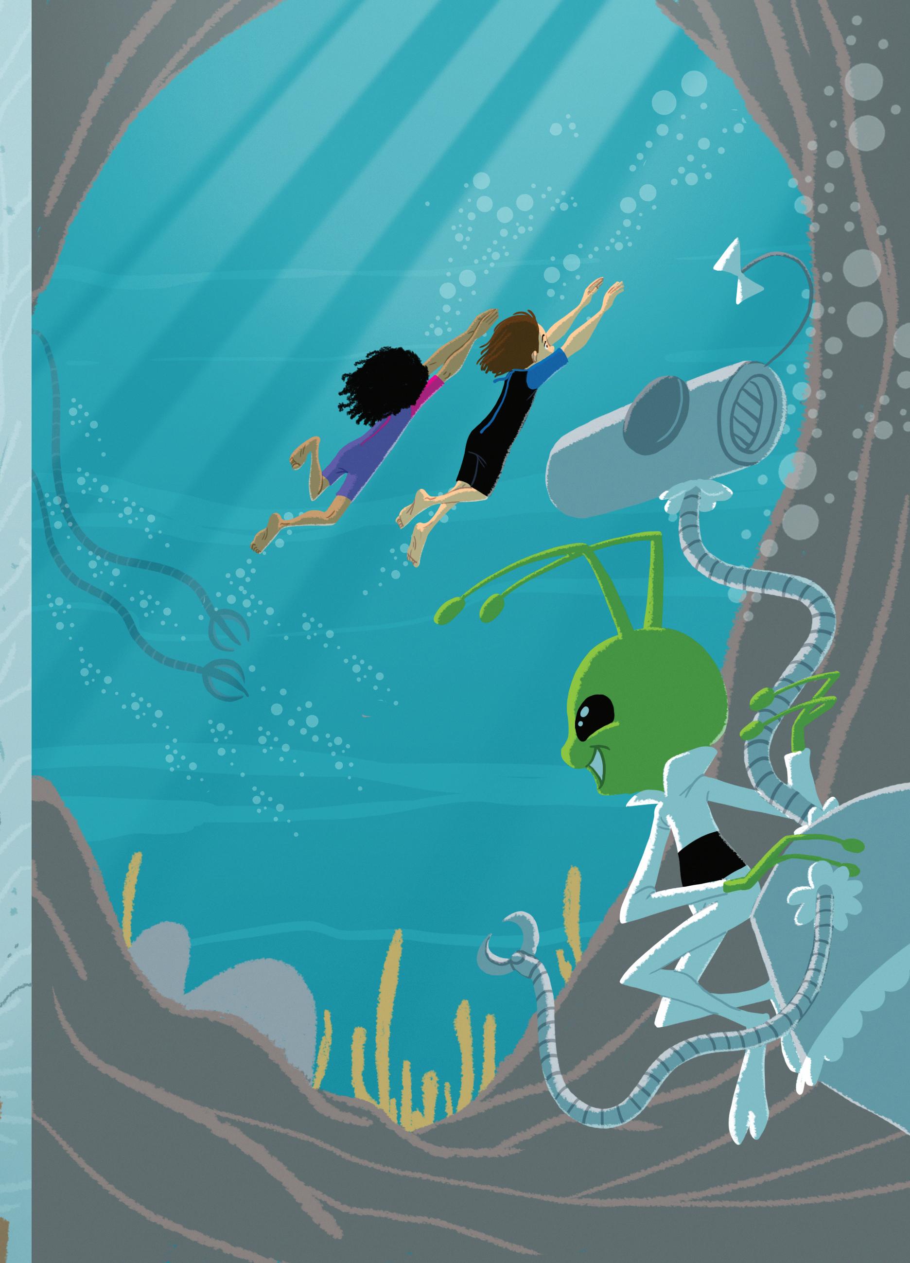 6 Davide e Susanna si tuffano in mare. Le lunghe braccia nere dell’astronave sono vicine!