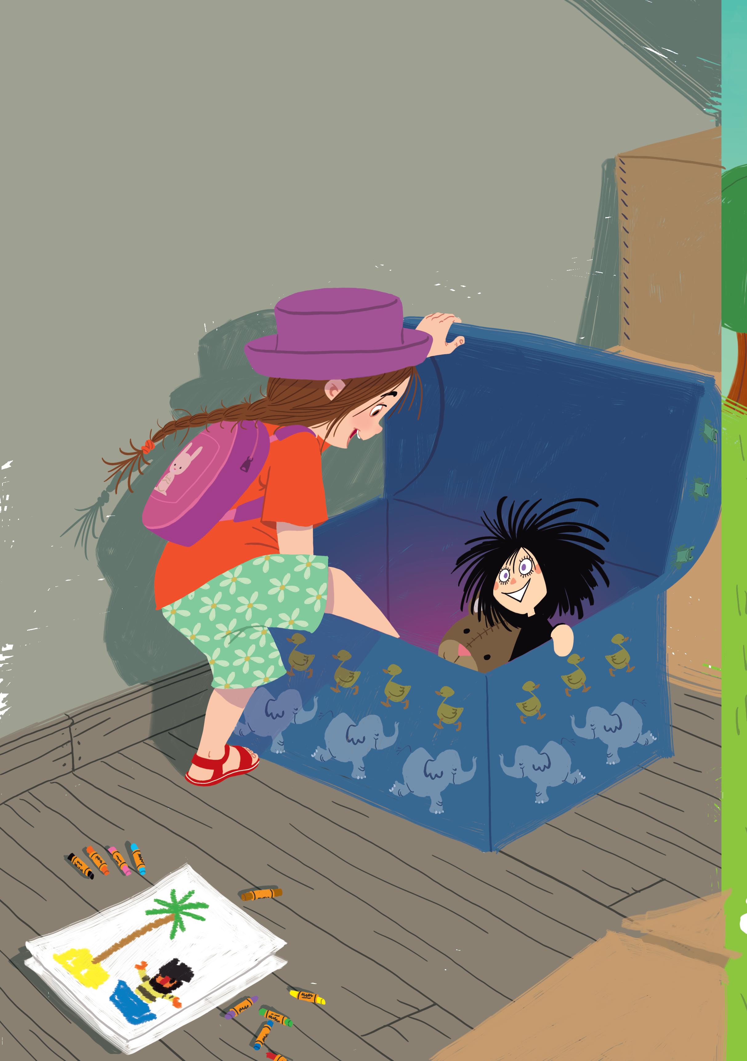 3 Kathi nimmt den Rucksack und den Sonnenhut.