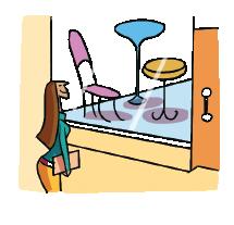 Sergio: Se me han roto las gafas, ¡no veo nada! Ayer tenía que ir al supermercado pero entré en la heladería.