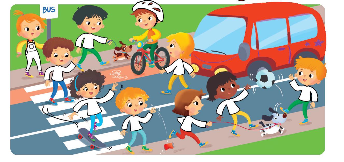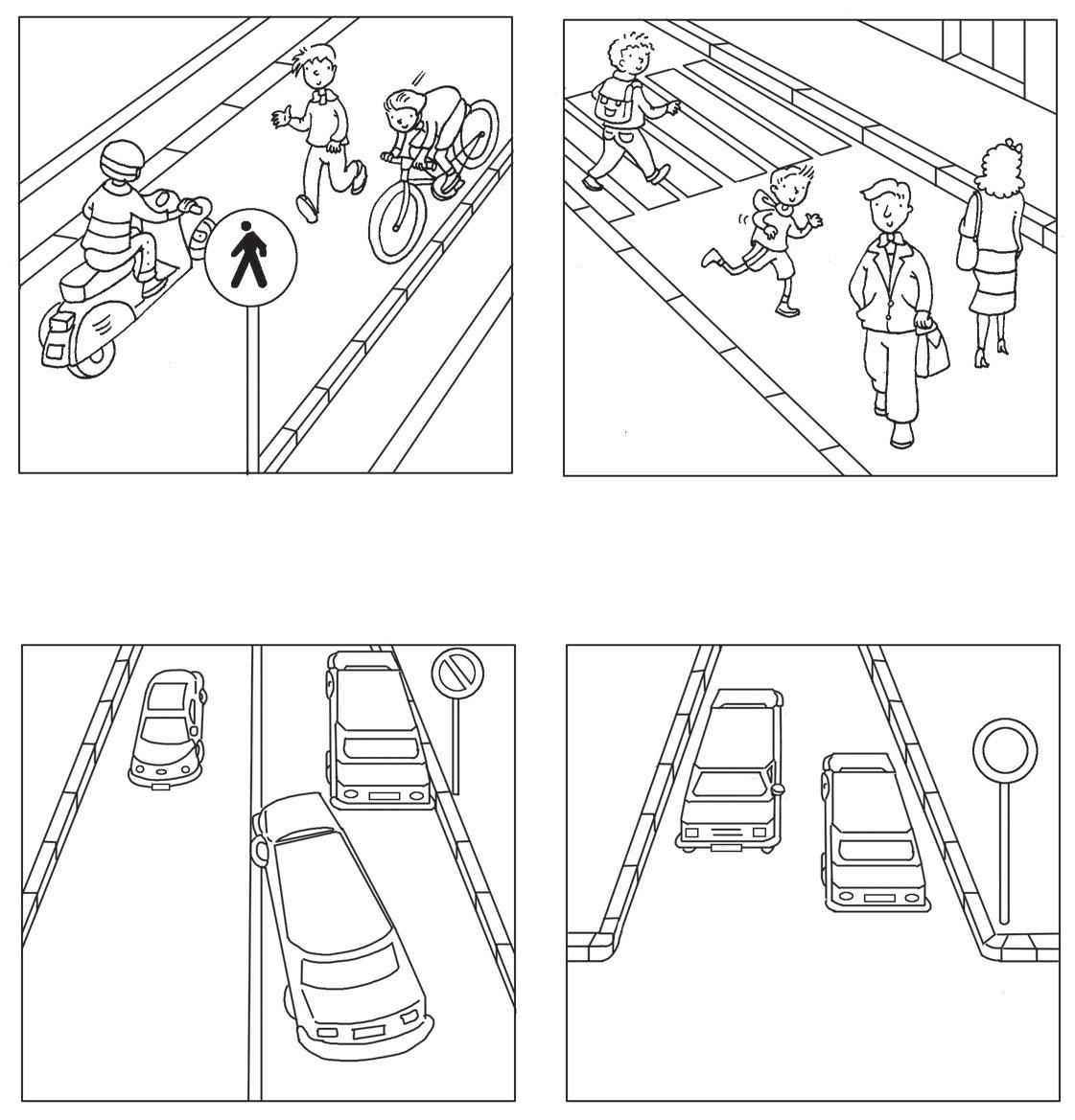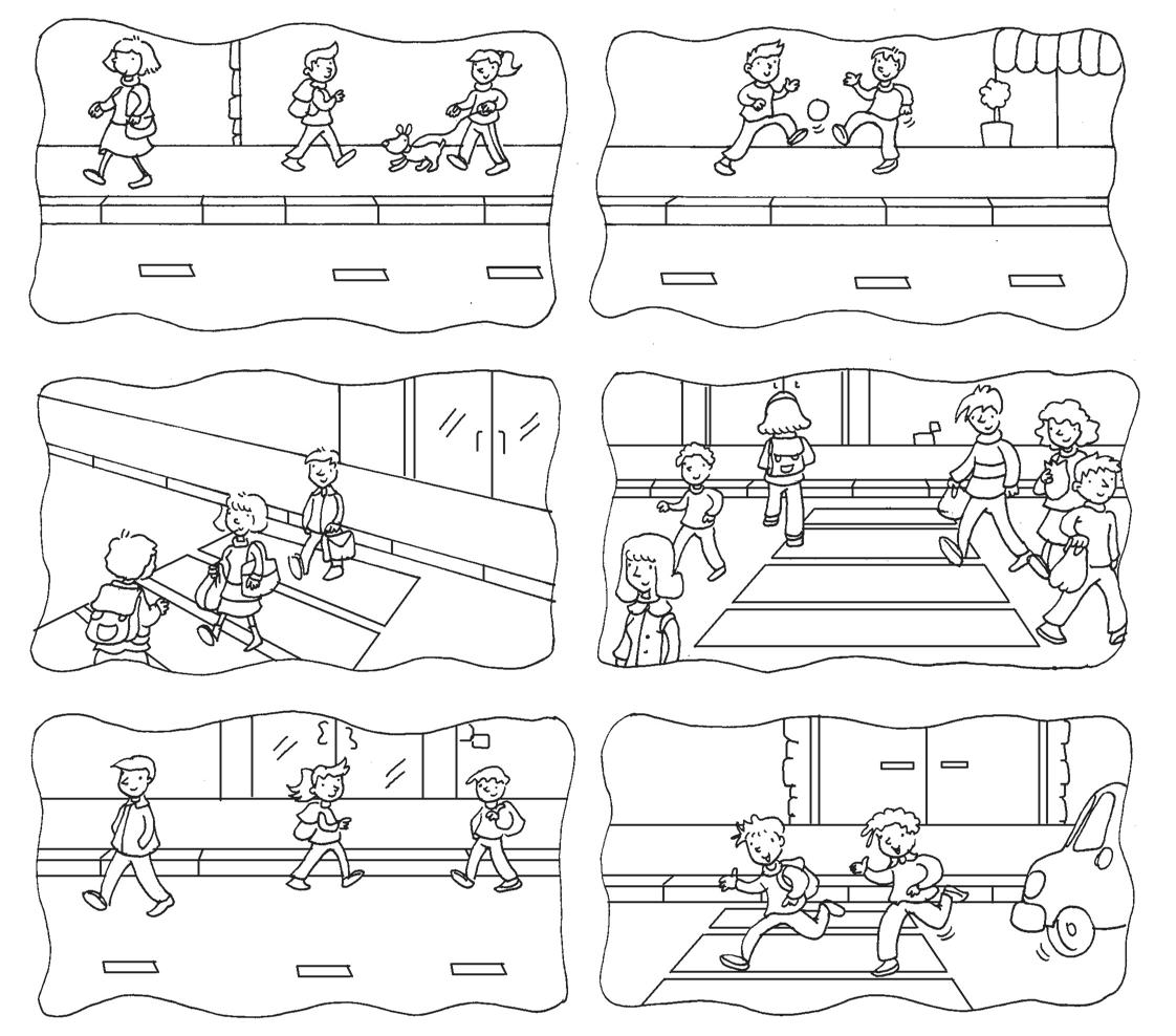 Osserva bene i disegni e descrivi le azioni dei pedoni.