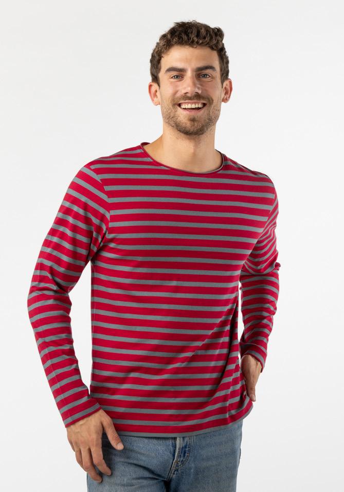 HERRENSHIRT ROLL rot-grau gestreift