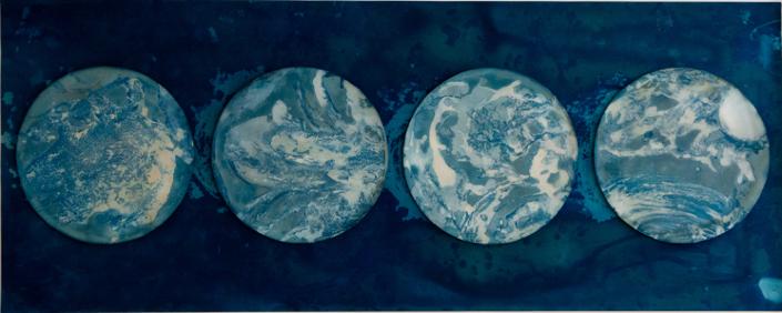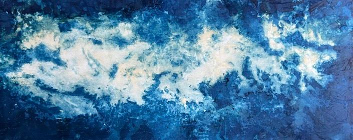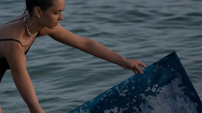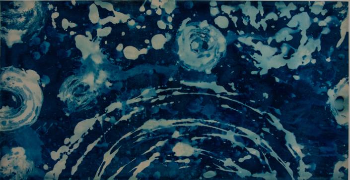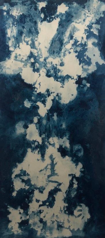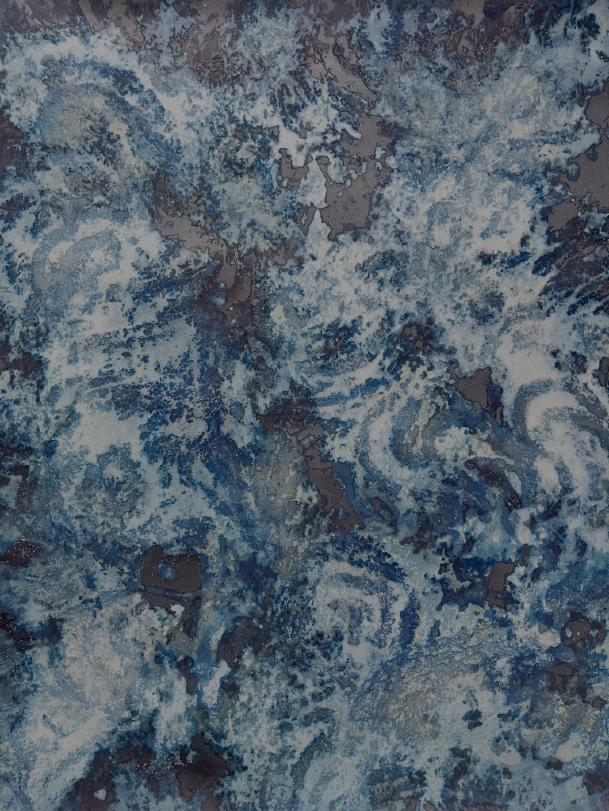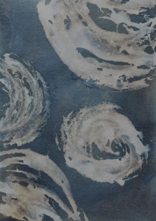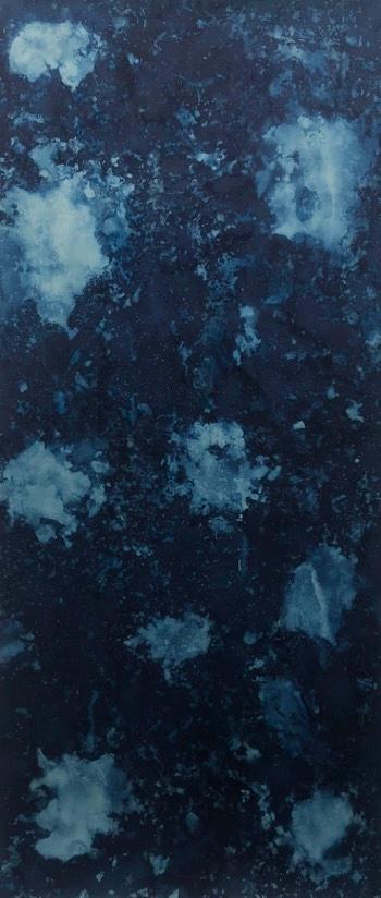 For Laura Medcalf, painting takes place at the meeting point between land and open water. Working with soluble, light-sensitive crystals and gestural marks, she immerses her surfaces in rivers, lakes and seas. Sunlight, minerals, currents and weather become collaborators in the work. The resulting pieces do not depict landscape so much as hold its presence: traces of light, water and time suspended within the surface.