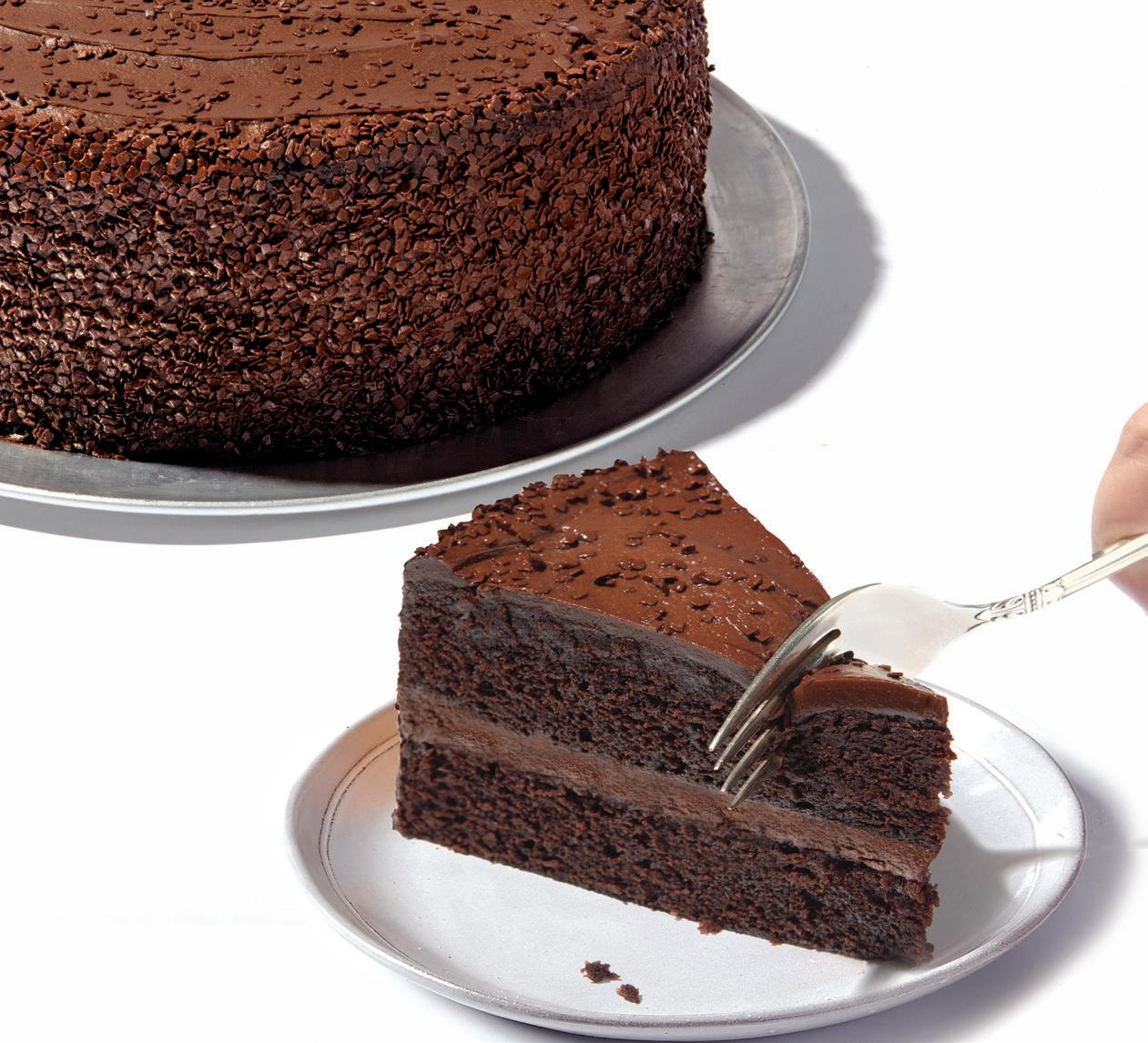 Two layers of housemade chocolate cake frosted with rich chocolate icing and finished with chocolate sprinkles. This cake is SO GOOD, it's the official Schulman Family birthday cake!