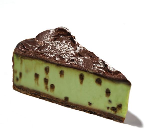 Refreshing peppermint cheesecake baked on a dark chocolate cookie crust, topped with chocolate ganache and crushed peppermint candies. $65 9", 3 lb. 8 oz., Pre-cut, Serves 14