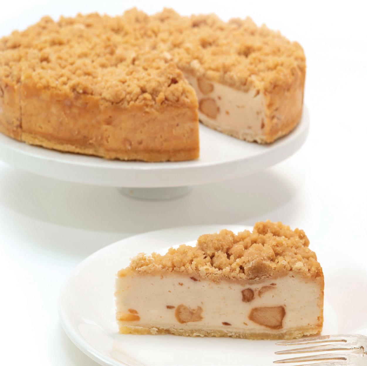 Original Plain Cheesecake made with fresh Michigan apples and a hint of cinnamon, topped with crunchy streusel, baked on an all-butter shortbread cookie crust. $47 8”, 2 lb. Pre-cut, Serves 12