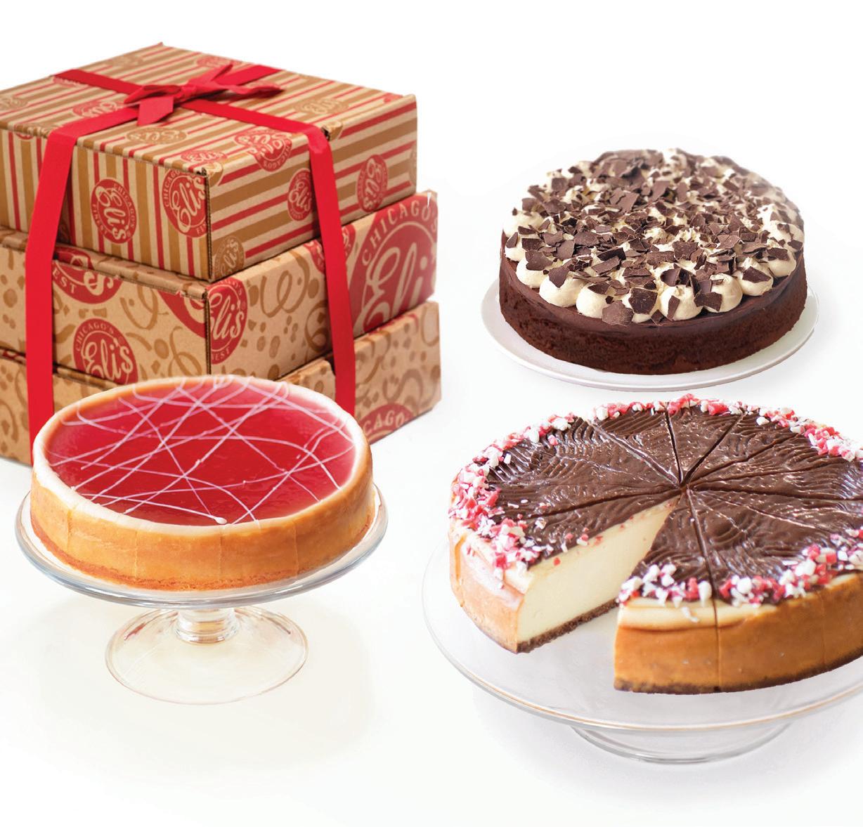 Eli's greatest hits for the holidays! One 7” Original Plain Cheesecake, one 9” Strawberry-topped Cheesecake, and six Chocolate Peppermint Crunch Dippers®, frozen chocolate peppermint cheesecake dipped in chocolate, served on a stick. $105 Serves 34