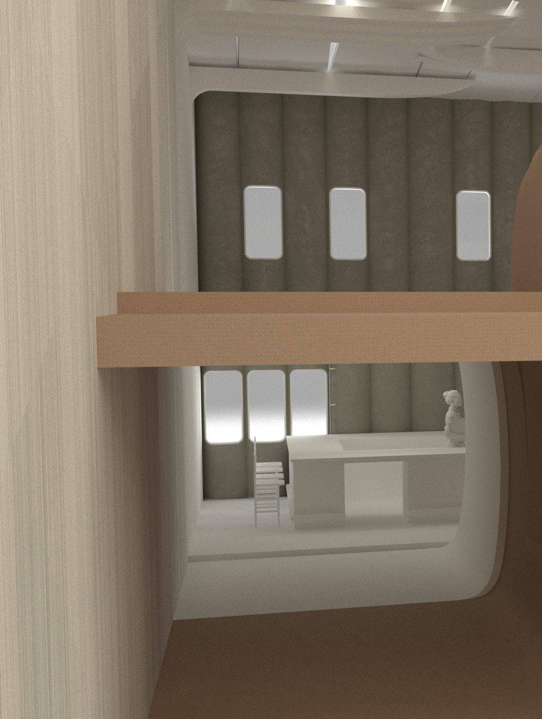 This nine-week project investigates the user experience from two different aspects with two completely different design philosophies blended into the same building. A geometrically sharp exterior composed of all different angle sizes is contrasted completely with a geometrically soft interior where not a single straight edge is found. The building would provide a building block for the opportunity to study how architecture creates emotions and affects the user experience. This building could be contrasted by a soft geometric form with a sharp interior with the same program to study how the user experience changes based solely on the architecture that is seemingly overlooked for interior experiences. The goal is to see how architecture can be capitalized to the fullest potential through architectural forms to complement the buildings program, drawing people into a space due to emotional connection not just what program lies within.