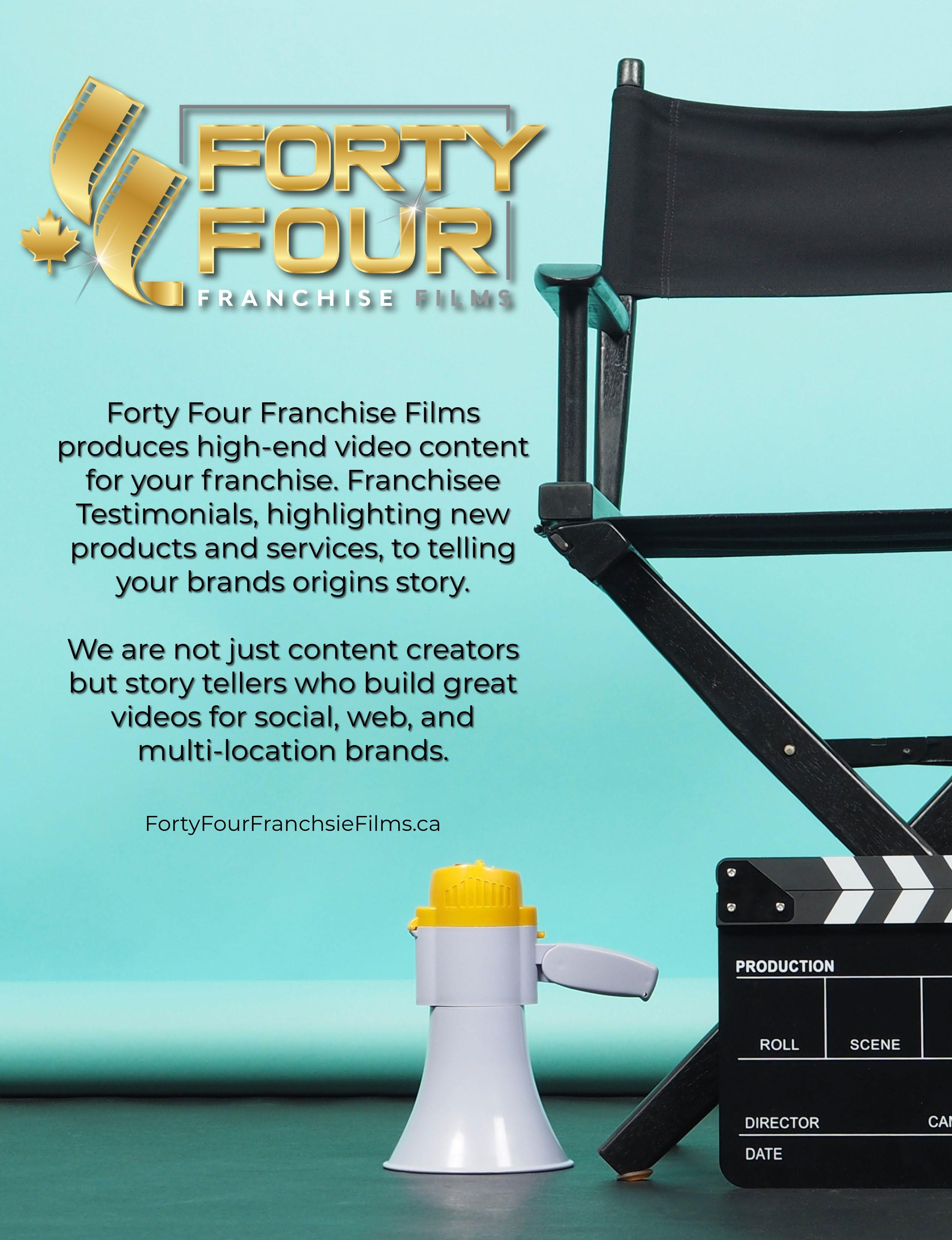 Forty Four Franchise Films, is a video-driven creative agency based in Canada. With a background in film and television, they have produced content for brands like Jaguar & Land Rover, BMW Motorrad, and Canadian Tire. The agency helps franchises and multi-location brands grow through high-end, story-driven video marketing.