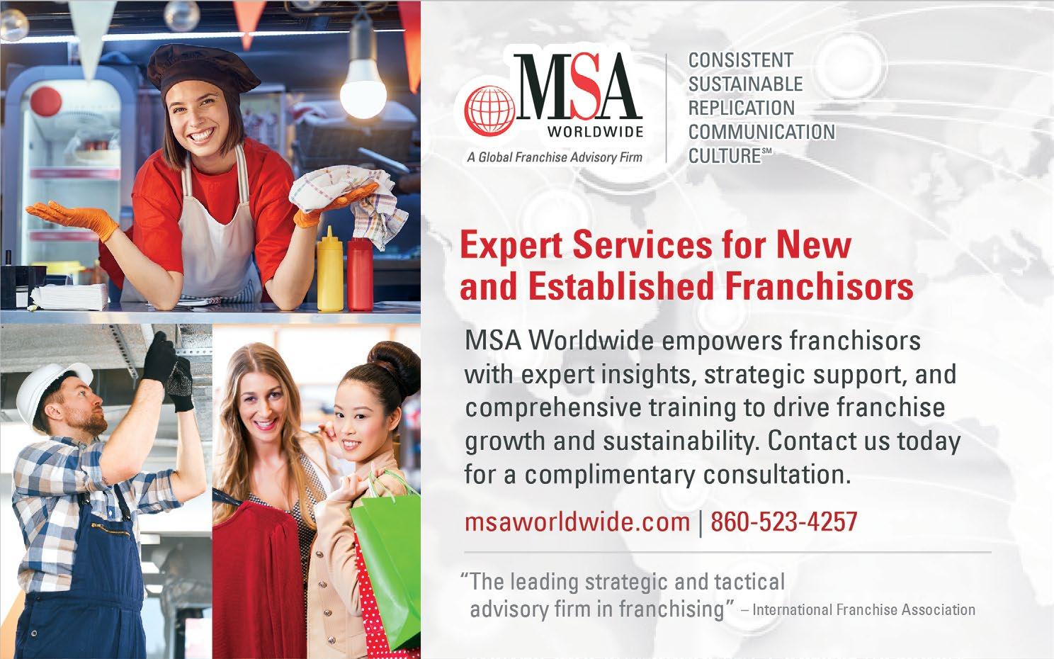 MSA Worldwide is a global franchise advisory firm. Our core practice is as strategic and tactical advisors for franchisors and dealers at every stage of their development. Our clients include emerging franchisors looking to determine how (and whether) to franchise their business to large multi-national franchisors seeking advice on system change, domestic and international growth, management and core support issues.