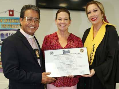 ceremonia recibieron diploma y acta de Drs.Tatiana Andrea Cardenas Carrero, Larry Bernal Muñoz que fueron homenajeados por dignatarios académicos presididos por el Dr. Hugo Cámara Internacional de Empresarios de New Presidente Mega Home Group. New York, Dr. Luis Club Ambassador Miami, Dr. Omar Sanchez Damaris Diaz ejecutiva diplomática República Alfonso Plazas Vega y Sra, Olga Berrio dirigente de manera efusiva felicitaron a los graduandos y especial la impecable conducción protocolaria Cardenas Valentino, capellán y director internacional elegancia, seriedad y distinción reafirmando la excelente que desempeña Logos International University, reconocida con el EMERALD AWARDS de la Cámara de