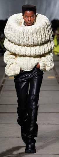 Los volúmenes XXL vistos en los últimos años tienden a desinflarse, pero la parte superior del cuerpo sigue siendo un centro neurálgico. El cuello, y en particular los hombros e incluso los brazos, son objeto de gran atención por parte de los modistos, que los resaltan a través de volúmenes redondeados con un espíritu guerrero o mediante materiales acogedores en un modo ultraprotector. Capullos de pelo o de malla, efectos texturizados, bufandas envolventes, mangas abullonadas, microchaquetas