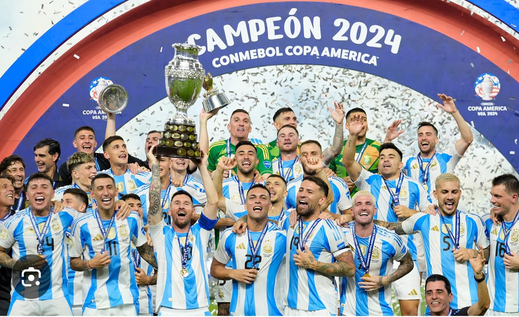 Copa América 2024 y se consagró bicampeón de América. El único gol del partido lo anotó Lautaro Martínez en el segundo tiempo de la prórroga cuando todo indicaba que el partido se iba a los penaltis. Con este título, la Albiceleste suma su cuarto título en los últimos tres años con Lionel Scaloni como entrenador: Copa América 2021, Finalissima 2022, Mundial 2022 y Copa América 2024. Antes de este período