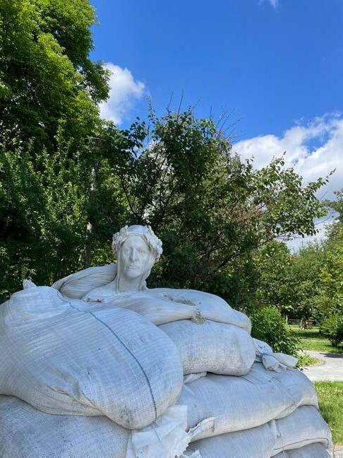 Kyiv monuments are covered by protective construction to save them from Russian shelling.