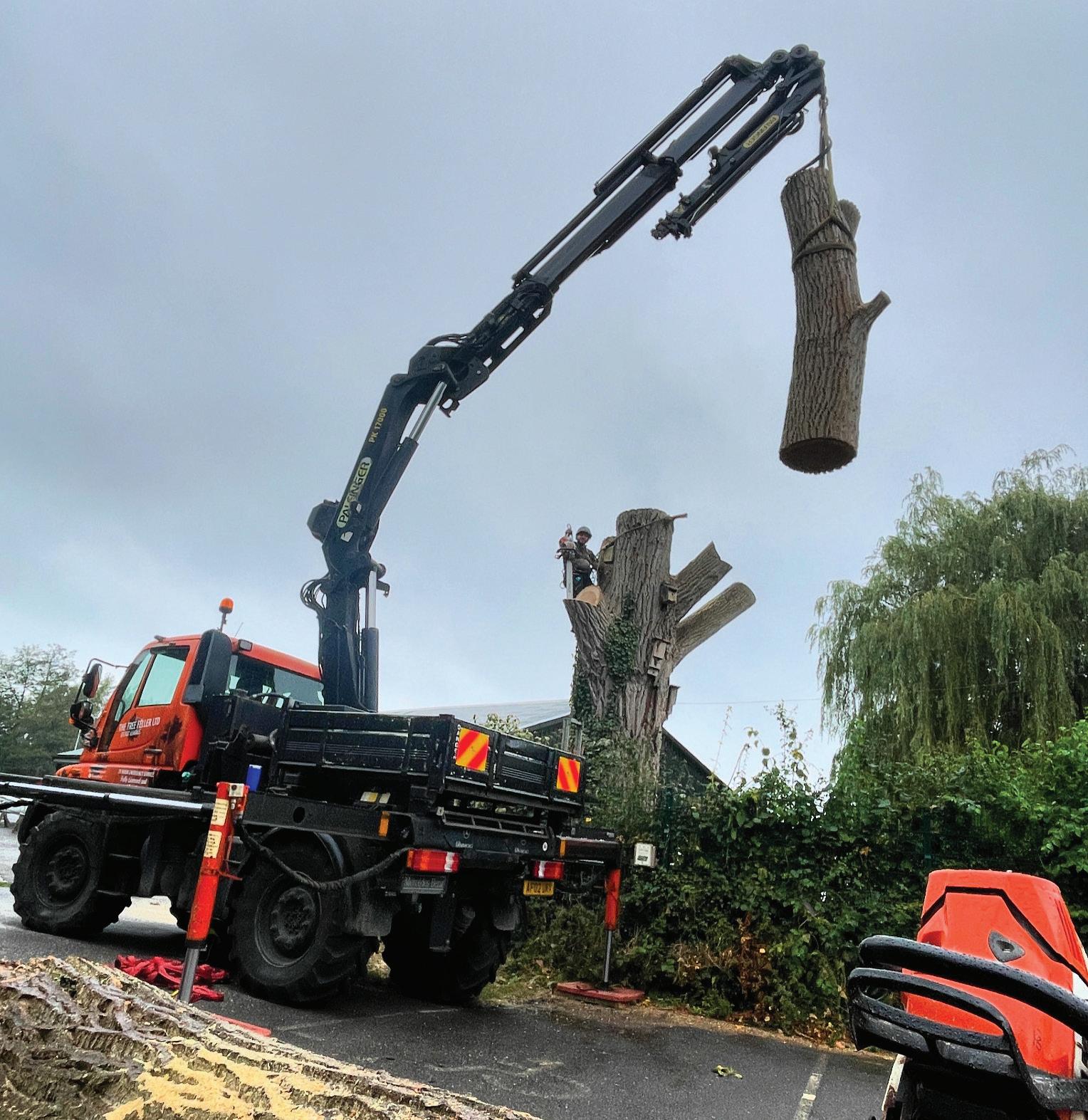 A joined-up effort is shown here, with three contractors involved. The photo supplied by Charles Fowler, director of The Tree Feller from Hertfordshire. Charles was contacted by Giles Clarke, of another Hertfordshire firm GPC Tree Surgeons, with a request for a crane to bring a crane down. The Tree Feller has a U400 Unimog with a 26m crane. The climber is Edward Ricardo of Santos Timber. The poplar, needed to be removed as it had fungus at the base. THIS ISSUE'S #ARBINACTION WINNER