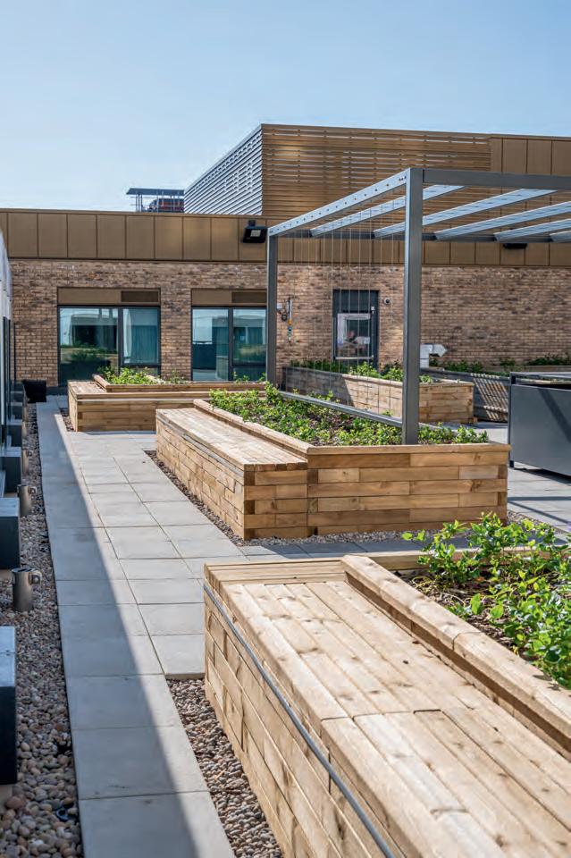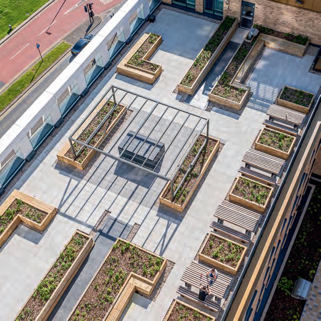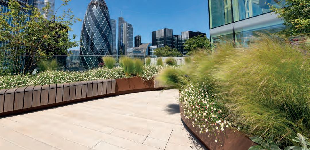 A complete sub-structure, paving or decking and terrace planter & seating system for rooftop spaces. Wallbarn’s high performance Class A fire-rated sub-structure and Bespoke Metal Planters’ solutions creates the perfect one-stop shop for hard & soft landscaping projects. Tel: 020 8916 2222 www.wallbarn.com