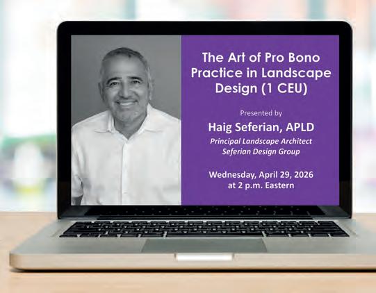 Discover the art of pro bono practice in landscape design and join the Association of Professional Landscape Designers (APLD) for a webinar on Wednesday, April 29, at 2 pm, Eastern.
