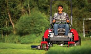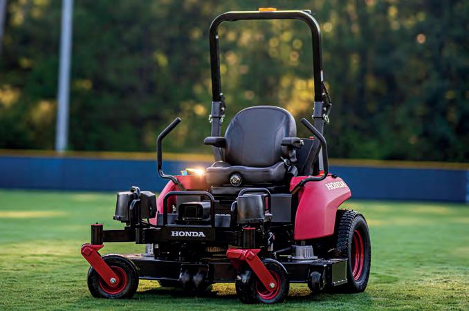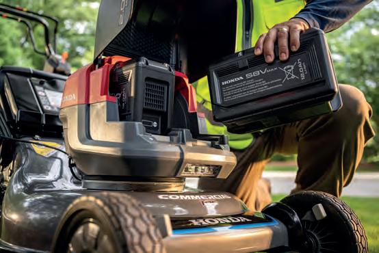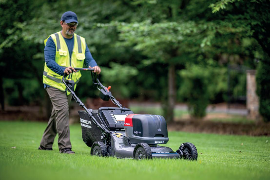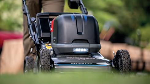 Designed for commercial use, the HRC-BE is a 21-inch battery-powered, selfpropelled walk-behind mower. Its specifications include a 2.0 kW motor and two 12 Ah batteries with a charger. Functional features are an electronic Cruise Control system for adjustable speed, the Roto-Stop blade brake for transport and Honda’s MicroCut twin-blade system. Construction consists of a heavyduty steel cutting deck, large 9-inch wheels and a robust frame. The unit offers eight cutting heights and includes a 2.5-bushel grass bag and a mulching plug. powerequipment.honda.com