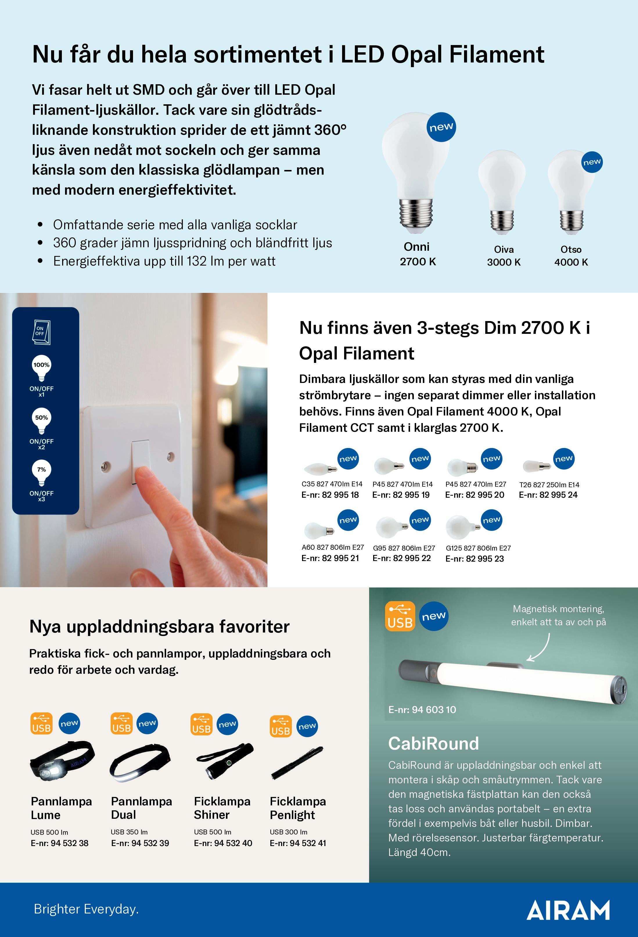 På detta uppslag ser du vårt stora sortiment av lampor med 3-stegsdimmer och minnesfunktion! Ljusstyrkan ändras enkelt mellan 100%, 50% eller 10% genom att upprepade gånger slå av och på strömbrytaren. Se hela sortimentet på Startrading.se