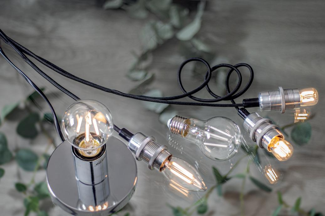 Ljuskällor med vita filament passar extra bra till ljuskronor. Snyggt även när ljuskronan är släckt.
