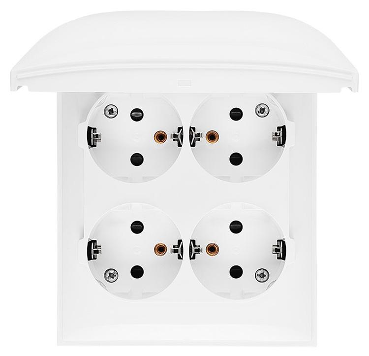 x4 Protector är Kontakt-Simons helt nya IP44-klassade serie med vägguttag och brytare. I serien hittar du förutom 1-vägs och 2-vägs, även ett 4-vägs kapslat IP44 vägguttag, helt nytt och unikt på marknaden. Snäpplock, gott om plats för kabel och snabbkoppling gör serien snabb och enkel att installera.