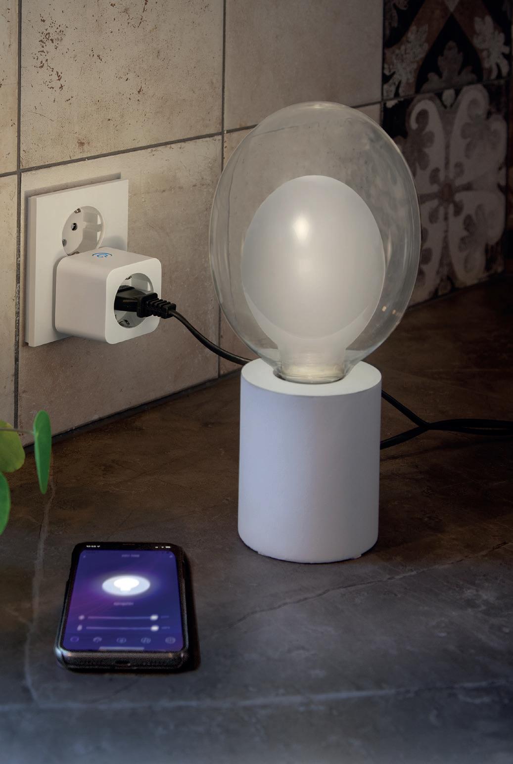 Smart plug on/off placeras i eluttaget för att slå på och av belysning och annan apparatur. Styr pluggen trådlöst