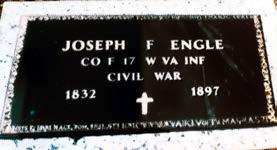 Joseph E. Engle (1832–1897) served with Company F, 17th West Virginia Infantry, during the Civil War. Members of VFW Post 8516 extend their sincere thanks to William Looney and Curry Monument Company for their assistance in placing the marker and helping ensure this veteran’s service is respectfully remembered.