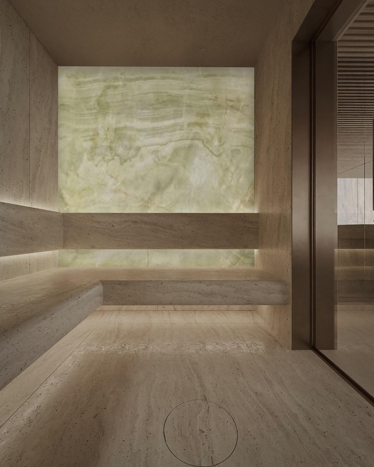Mayhaven is a private wellness centre located within a residential development in Mayfair, London. Designed exclusively for residents, the client’s brief was to create a space that felt both luxurious and unique, offering a refined retreat from city life. The centre includes a fully equipped gym and personal training area, treatment rooms and spa with a sauna, steam room and an experience shower. As all areas can be privately booked, the design needed to support both relaxation and shared experiences.