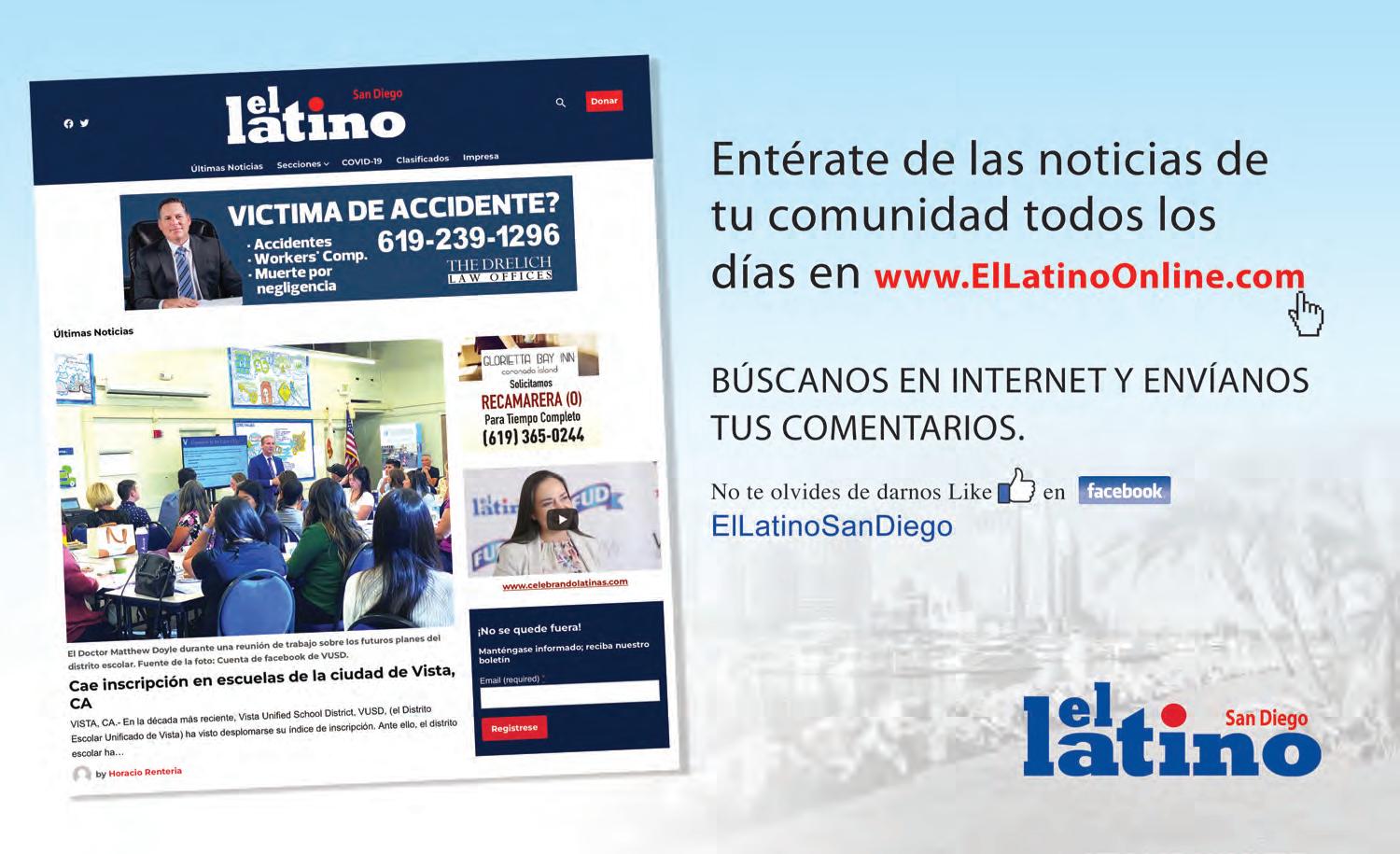 El Latino es una publicación semanal sirviendo la comunidad del Condado de San Diego. Fundada en 1988. El Latino es una publicación de propiedad minoritaria, hispana y mujer. Cartas de opinion son bienvenidas con la información personal de su autor.