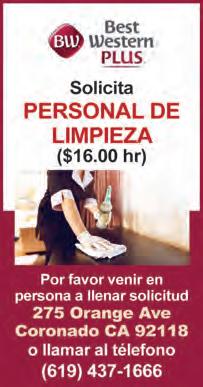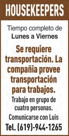 Busco trabajo de limpieza de oficinas, casas, ayudante de cocina, dishwasher, trabajo de hotel, áreas públicas, cuidado de personas mayores, cuento con referencias. (619) 504-8178