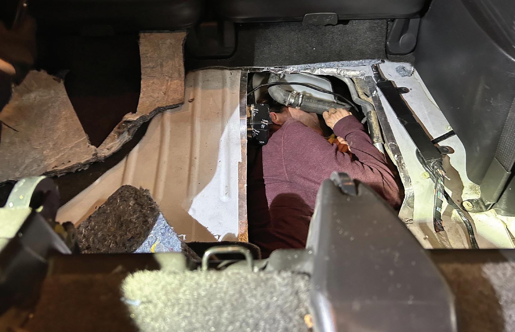 La víctima de contrabando se encontraba oculto dentro de un compartimento (no original) construido dentro del tanque de combustible del vehículo.