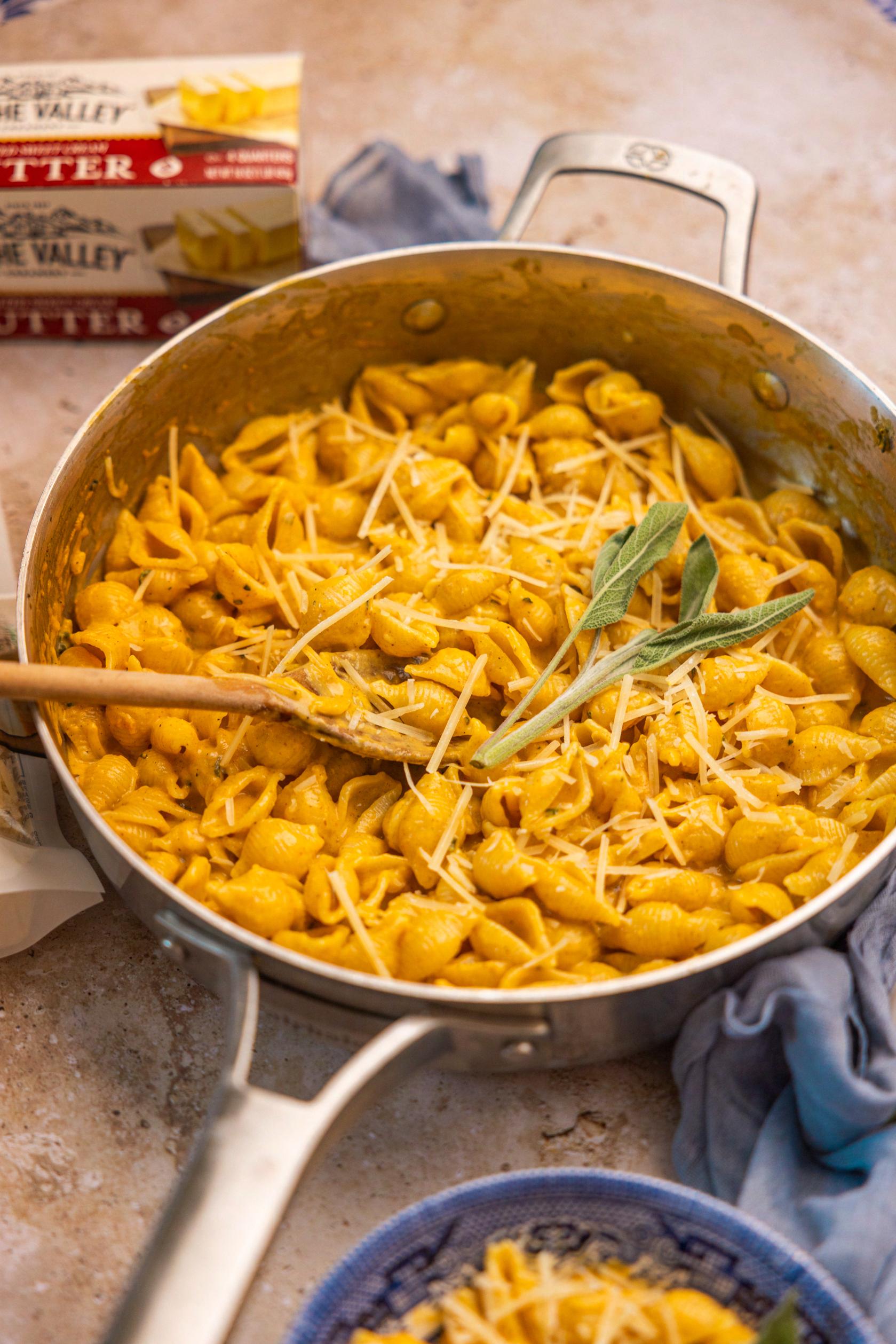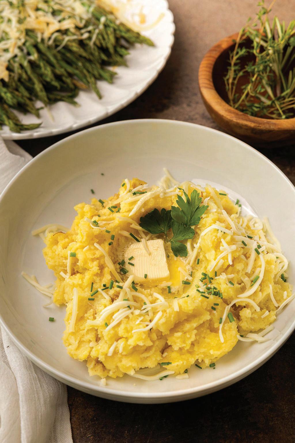 FINISH & SERVE: Spoon into a serving bowl, top with the remaining 2 table spoons Cache Valley Creamery Salted Butter, and sprinkle with Cache Valley Creamery Shredded Parmesan.
