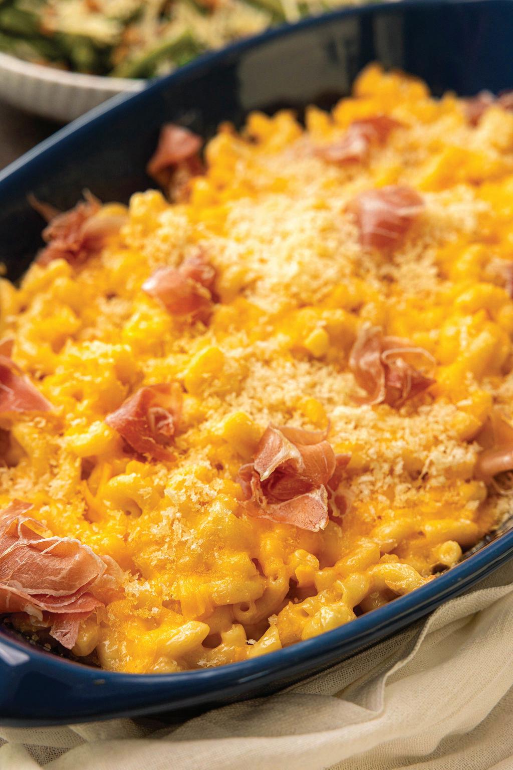 Sprinkle the breadcrumb mixture evenly over the pasta, followed by the crispy prosciutto. Bake at 375°F for 20–25 minutes, until bubbling and golden brown.
