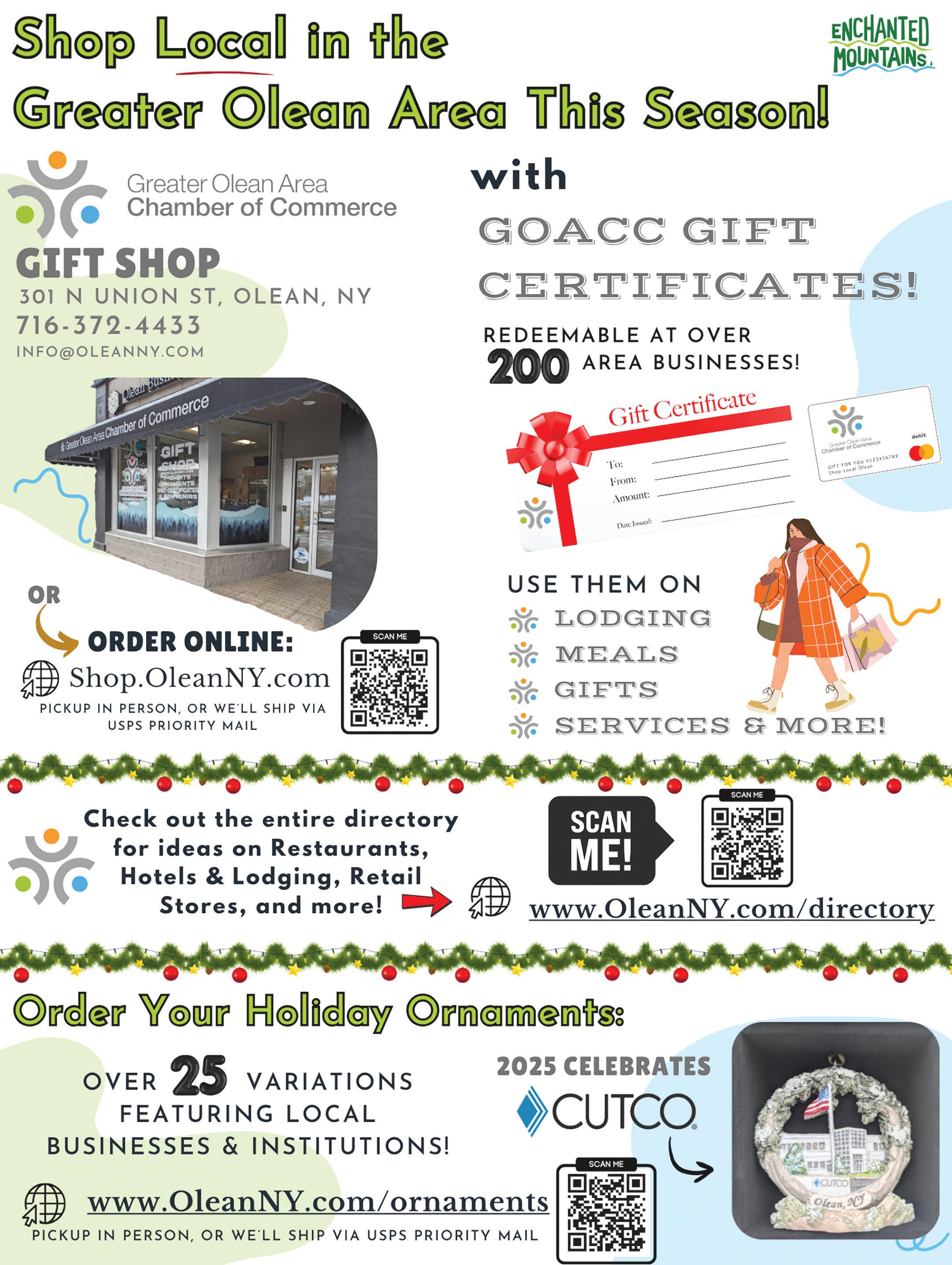 For more information, call (716) 372-4433, email info@oleanny.com, or visit the Chamber at 301 N. Union St. for more information.