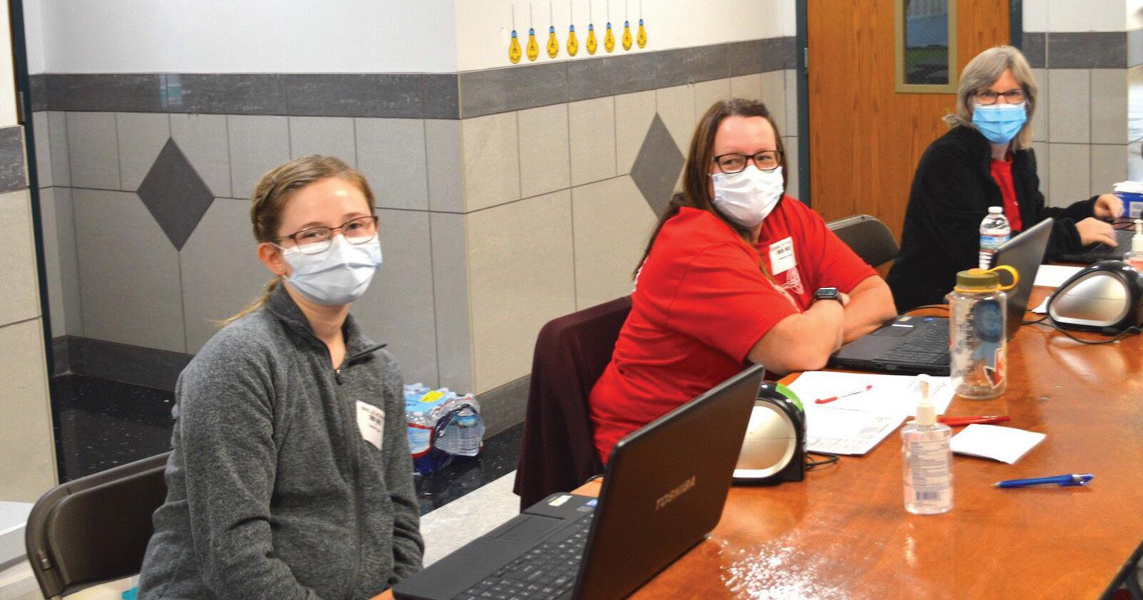 From left are Brielle McInroy of Hornell, Katlynn Palmer of Morrisville and Kerri Potter of Belmont — they were among the more than 70 Alfred State College students who volunteered at the RAM clinic.