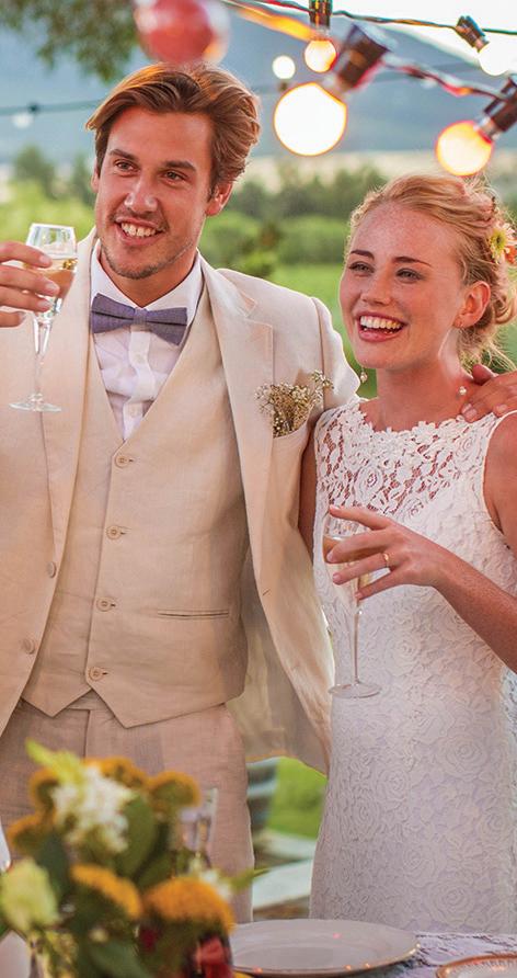 gamut of styles. One to consider is loosely plaited waterfall braids that add whimsy. Additional braided options also work well for less formal weddings.