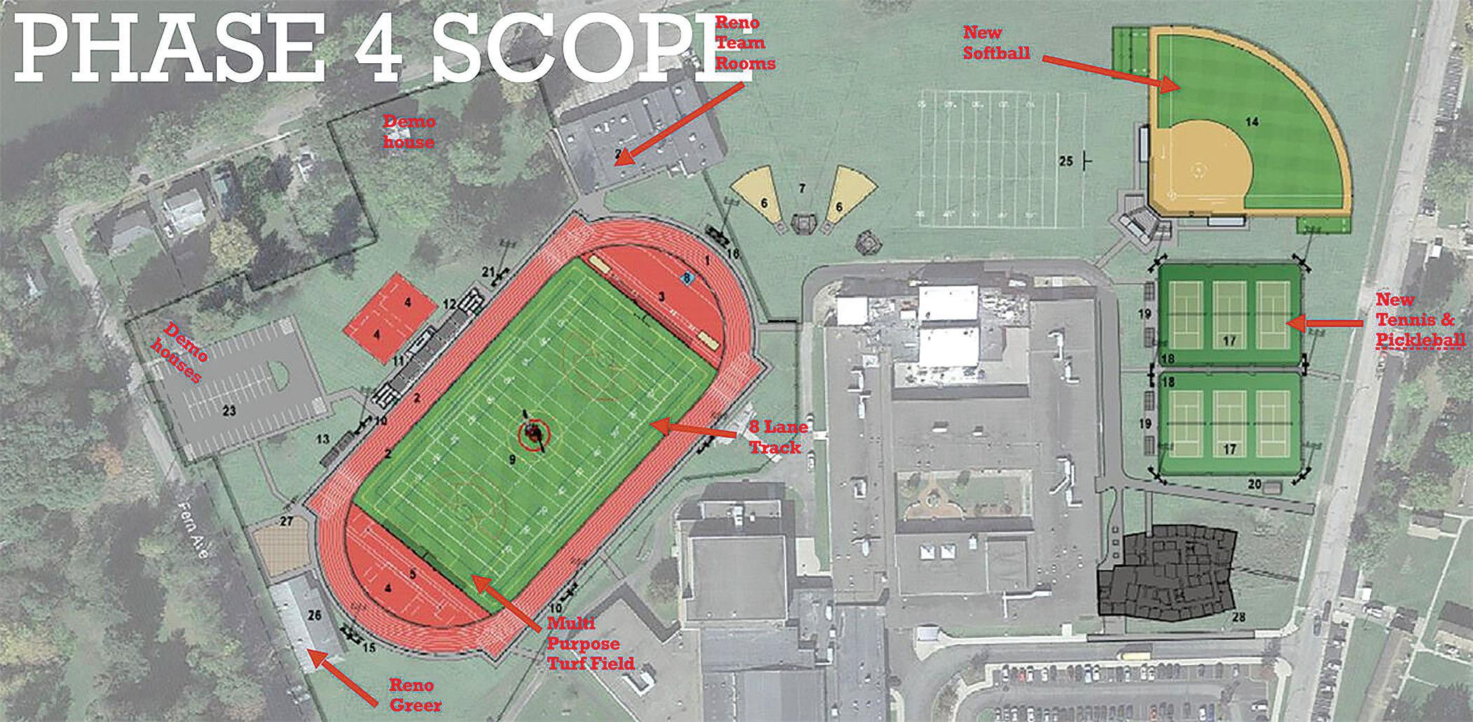 capital project pertains to renovations at the track and field, soccer field, tennis courts, softball field and football practice field, all located near Fern and Front avenues. The need for a new bus garage, presently located on Front Avenue next to the athletic facilities, has also been discussed for a future capital project.