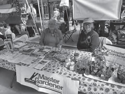 Master Gardeners sharing horticulture and invasive species information at a local farmer’s market