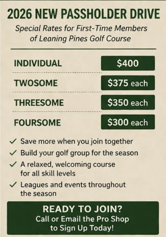 • July 17-19: Pine Acres Men’s Open Tournament. Live music on the 17th, open to the public