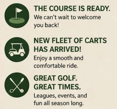 After a wetter and colder spring than hoped for, both the club’s staff and its members are ready for the season to begin. Behind the scenes, employees have been working hard to prepare the course and clubhouse as they look forward to a fantastic season filled with great events, friendly competition and plenty of memorable moments with friends and family.
