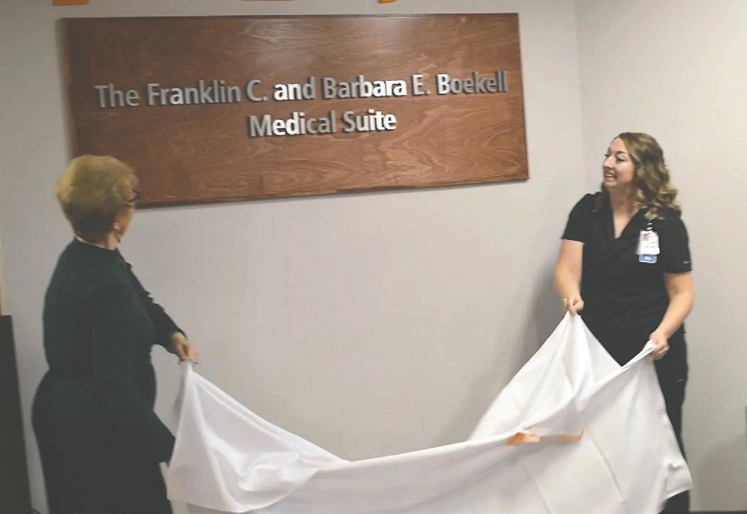 Roeske and Enders unveiled the sign designating the Franklin C. and Barbara E. Boekell Medical Suite.