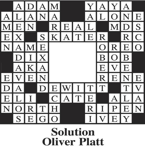 The identity of the featured celebrity is found within the answers in the puzzle. In order to take the TV Challenge, unscramble the letters noted