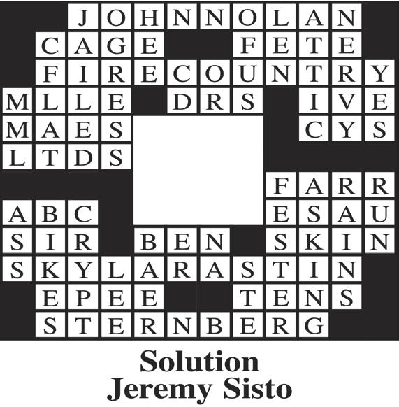ACROSS 1. Role on “The Rookie” (2) 8. Nicolas 9. Celebration 10. Series for Kevin Alejandro (2) 14. Senorita in Strasbourg 15. Kildare & Quinn: abbr. 16. “__ Got a Gal in Kalamazoo” 17. West & others 18. Namesakes of pitcher Young 19. Classic Fords 20. Jamie of “M*A*S*H” 24. “Station 19” network 27. Jacob’s twin 28. John Gielgud 29. Jay R. Ferguson’s “The Conners” role 2 x 3” ad Solution is on page 11. 3 x 5” ad 3 x 5” ad 3 x 10.5” ad Welcome to nursing jobs that fit your life. Aveanna Healthcare, LLC does not discriminate on the basis of race, color, religion, national origin, age, sex, sexual orientation, gender identity or expression, disability, or any other basis prohibited by federal, state, or local law. © 2019 Aveanna Healthcare, LLC. The Aveanna Heart Logo is a registered trademark of Aveanna Healthcare LLC and its subsidiaries. AVE956 To learn more, call 800-882-3519 or email Erin.Didomizio@aveanna.com aveanna.com
