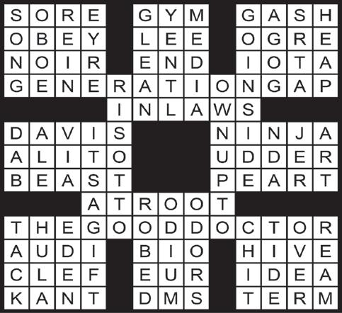 2 x 2” ad Crossword Puzzle Solution is on page 11. Across 1. Miffed 5. Room with TVs set to mute 8. Long cut 12. Do as directed 13. Linda ___ (Supergirl’s alias) 14. Shrek or Fiona, e.g. 15. Film ___ 16. Wind up 17. Little bit 18. Game show hosted by Kelly Ripa 21. Unwelcome visitors, sometimes 22. Actress Viola 26. “American ___ Warrior” 30. Colleague of Thomas 31. Milk source 32. “Beauty and the ___” 33. Rush drummer Neil 34. Basically 38. Freddie Highmore medical drama 45. Autobahn auto 46. Short life story? 47. Honey bunch? 48. Staff symbol 49. Where Belg. is 50. Guess 51. “Critique of Practical Reason” author 52. Some Twitter messages 53. Duration Down