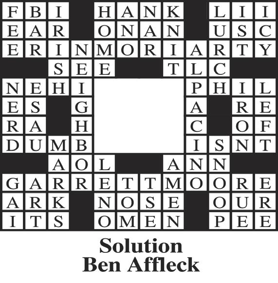 DOWN 1. Charge 2. Saloon 3. Like Pierce Brosnan & Colin Farrell 4. “__ Improvement” 5. Year south of the border 6. VP Rockefeller’s monogram 7. Make a sweater 8. Role on “The