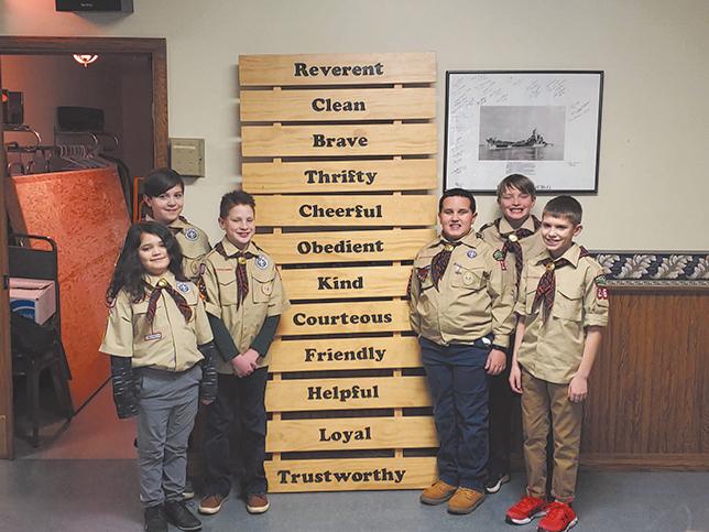 Arrow of Light Cubs who crossed over to the Troop are: Tanner Damon, son of Kyle and Kristina Damon, Tyler Field, son of Damion and Holly Field, Bryce Gustafson, son of Brian and Jaimee Gustafson, Ben Siebert, son of Bill and Nicki Siebert, Milo Wille, son of Toby and Leslie Wille, and Eli Williams, son of Nick and Alison Williams. Holly Field served as their Den Leader throughout their Cub Scout careers. Field served as a