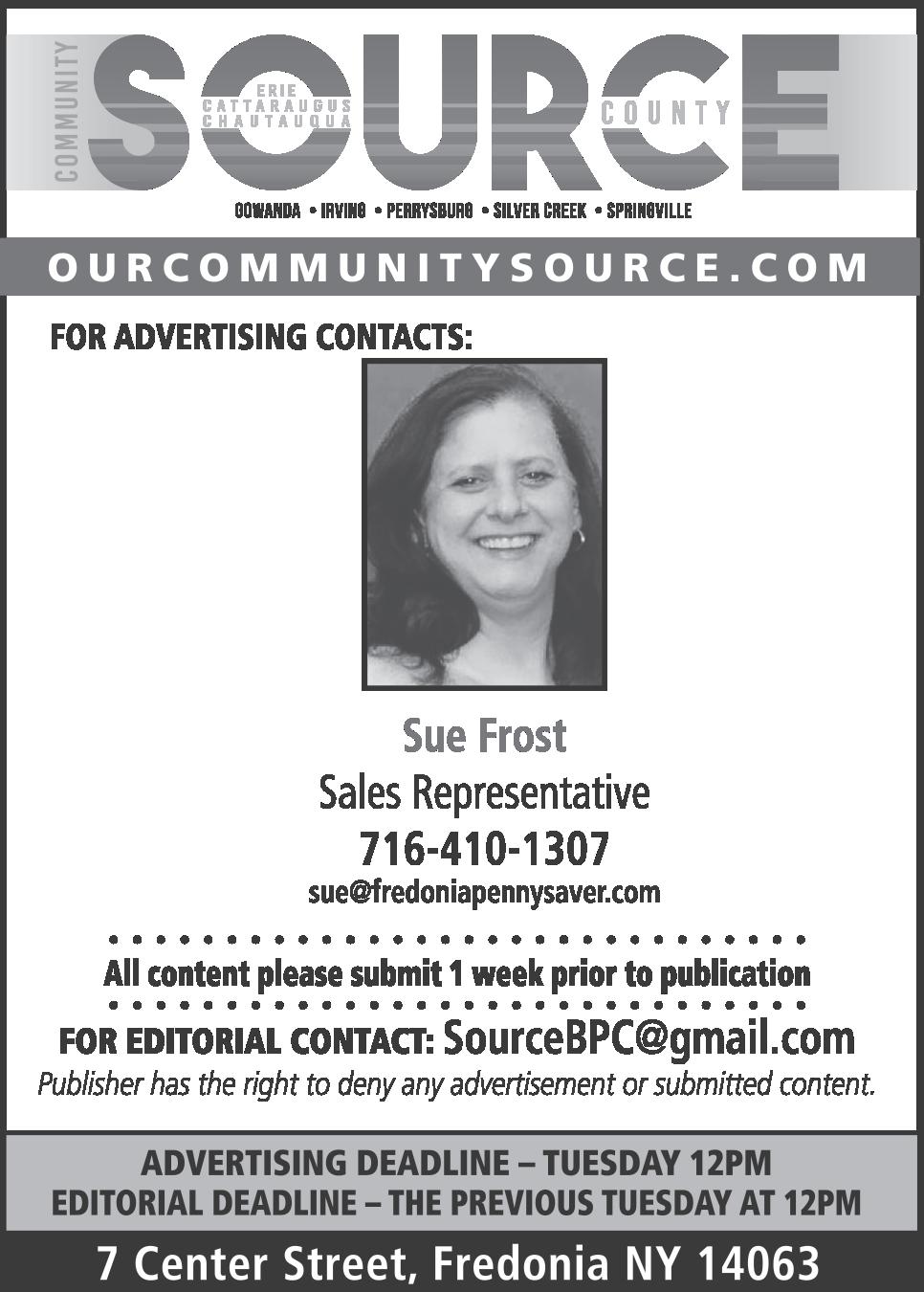 3NOVEMBER 4, 2022 ERIE CATTARAUGUS CHAUTAUQUA COUNTY COMMUNITY SOURCE 5187 Camp Rd. Hamburg, NY 14075 DON’T GAMBLE WITH YOUR SAFETY!!!DON’T GAMBLE WITH YOUR SAFETY!!! B&S DISCOUNT TIRESB&S DISCOUNT TIRES ROUTES 20 & 60, FREDONIA (Right Next to Wendy’s) • 672-4389 Monday - Friday 8 AM - 5 PM; Saturday 8 AM - Noon • NYS Inspections • Astro Lite Batteries (5 Year Warranty) • Complete Brake & Exhaust Service • Windshield Wipers • Lawnmower, Wheelbarrow & Lawn Tractor Tires LOCALLY OWNED & OPERATED Bald tires are not only dangerous. They can also lead to blowouts and decreased efficiency in handling and braking. STOP IN AND SEE US TODAY FOR COMPETITIVE PRICES AND FAST FRIENDLY SERVICE!! DON’T GAMBLE WITH YOUR SAFETY!!!