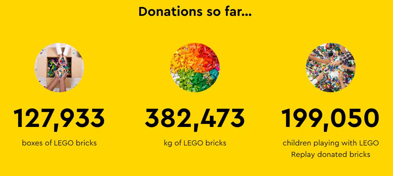 LEGO. (n.d.). Donations so far... Replay - environment - sustainability - lego.com GB. Retrieved December 5, 2022, from https://www.lego.com/en-gb/sustainability/environment/replay