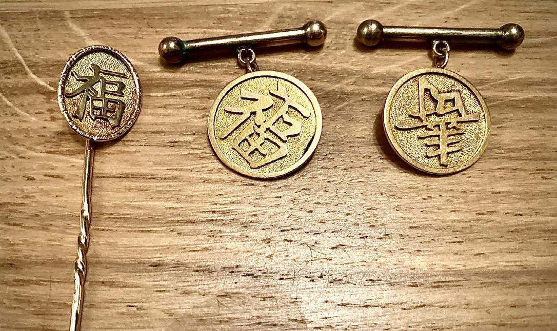 A: One of the pictures is of your great grandfather’s cufflinks and tie pin from his time living and working in China, where my dad was born. They carry great heritage. The other picture is of the medals I have been awarded. I have both full size and miniature versions.