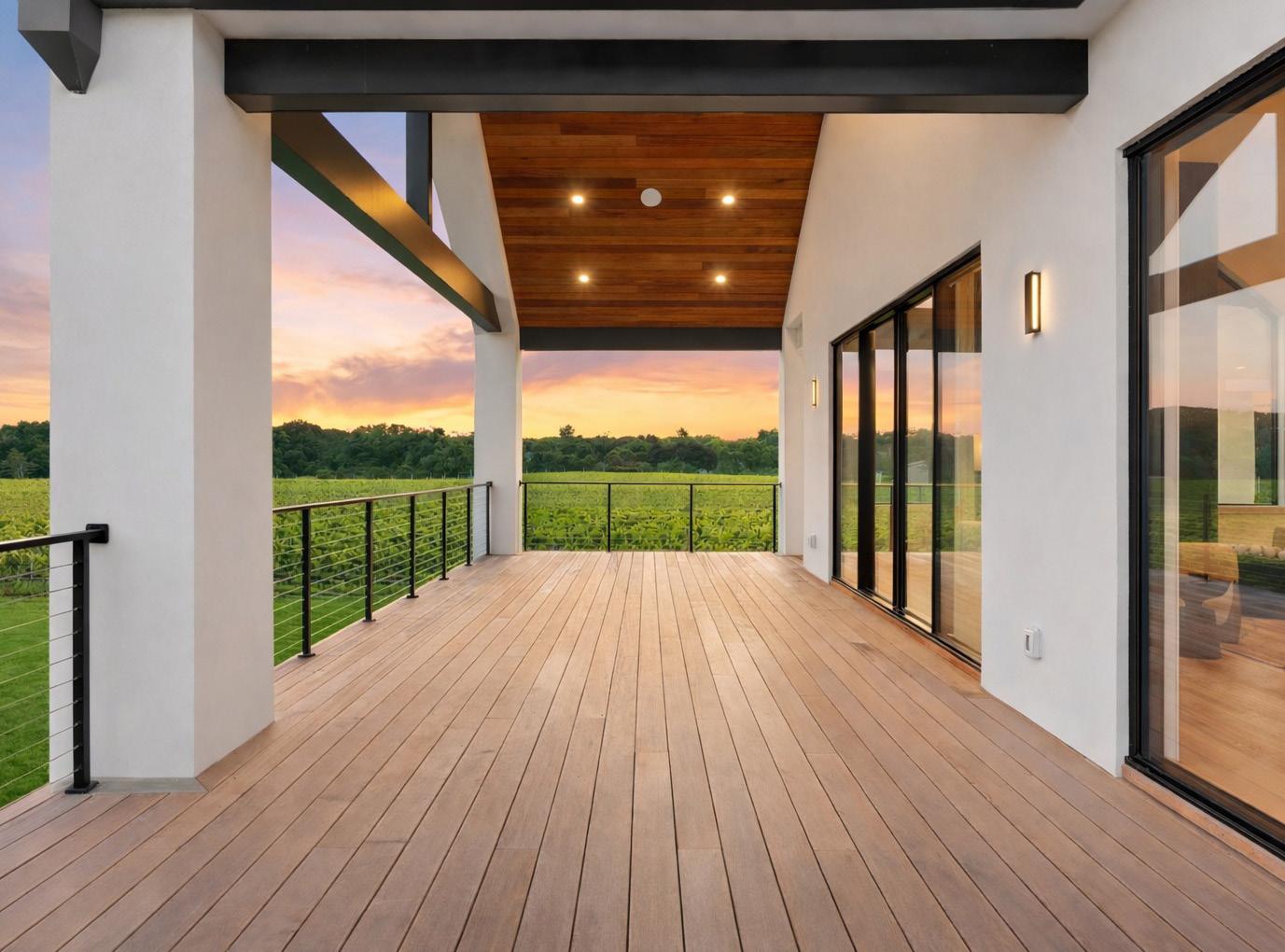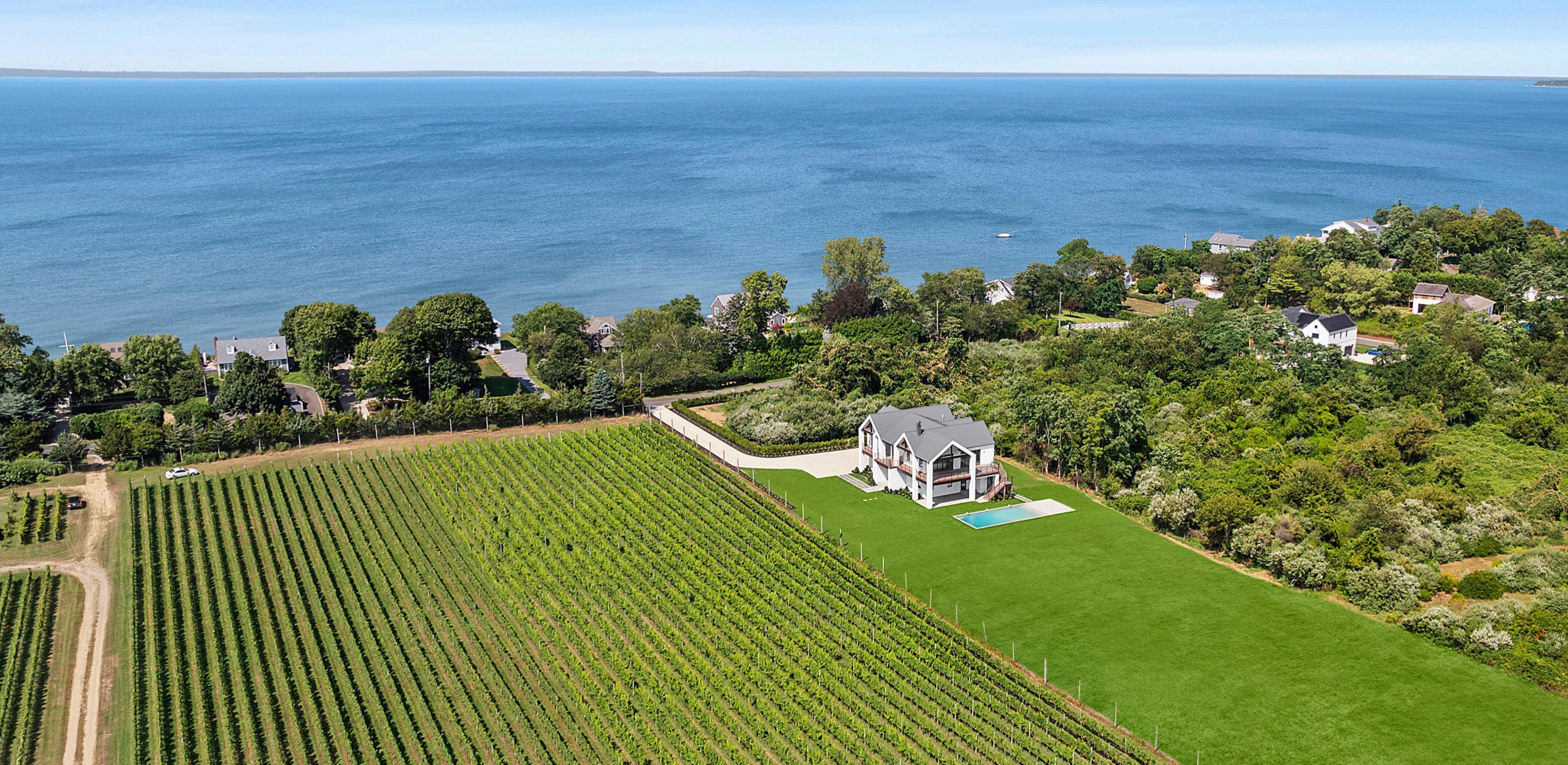 Soundview on the Vines presents a rare opportunity to own a new construction vineyard-side estate where modern architecture, refined craftsmanship, and the natural beauty of the North Fork converge. Spanning approximately 7,300SF and situated on nearly 2 acres, this exceptional residence has been thoughtfully designed to balance grandscale entertaining with relaxed, everyday luxury. Upon arrival, a striking foyer sets the tone, leading into a private guest wing featuring multiple ensuite bedrooms, each appointed with spa-inspired baths and generous proportions. This level opens seamlessly to the outdoors, where the covered patio and a heated 20x40 saltwater gunite pool overlook rolling vineyards and open farmland, creating a tranquil backdrop for both intimate gatherings and large-scale entertaining. A well-planned breezeway connecting the mudroom to a three-car garage, while a floating staircase and elevator provide effortless access to all three levels of the home. The upper level serves as the heart of the residence with incredible views and natural light. A custom chef’s kitchen anchors the space, complete with dual islands and premium finishes, flowing naturally into a sophisticated lounge with a statement gas fireplace and an expansive great room ideal for hosting. Walls of glass and multiple sliding doors open to a wrap-around mahogany deck, capturing sweeping vineyard views and allowing indoor and outdoor living to merge beautifully. The primary suite is a private retreat, featuring its own balcony, serene views across the vines, dual custom closets, and a spa-caliber bath with soaking tub and oversized double shower. The lower level offers remarkable flexibility, with additional bedrooms, a full bath, and a generous recreation area adaptable to a gym, media room, studio, or wine storage. Direct outdoor access enhances the home’s connection to its surroundings, while the landscaped grounds provide ample room for future vision—whether it be an outdoor kitchen, accessory building, tennis/pickle ball court, curated gardens and more! Ideally positioned just moments from Long Island Sound beaches and the North Fork’s celebrated vineyards, Soundview on the Vines is a truly inspiring estate where luxury, privacy, and lifestyle come together in one extraordinary setting. elliman.com/957966